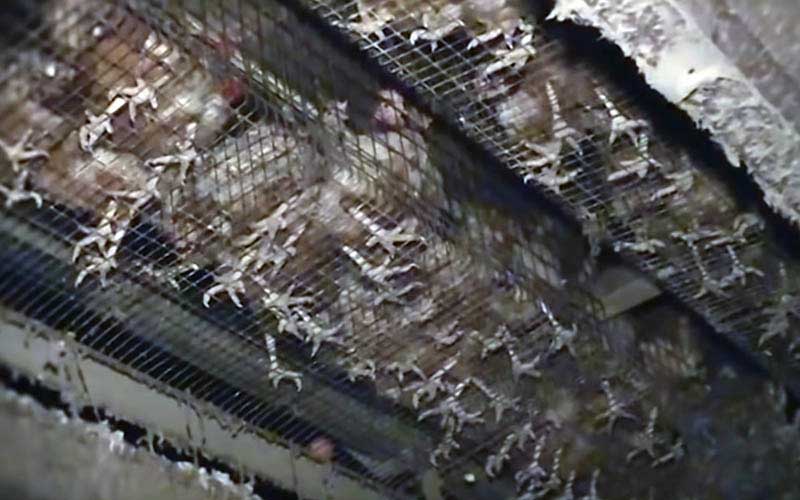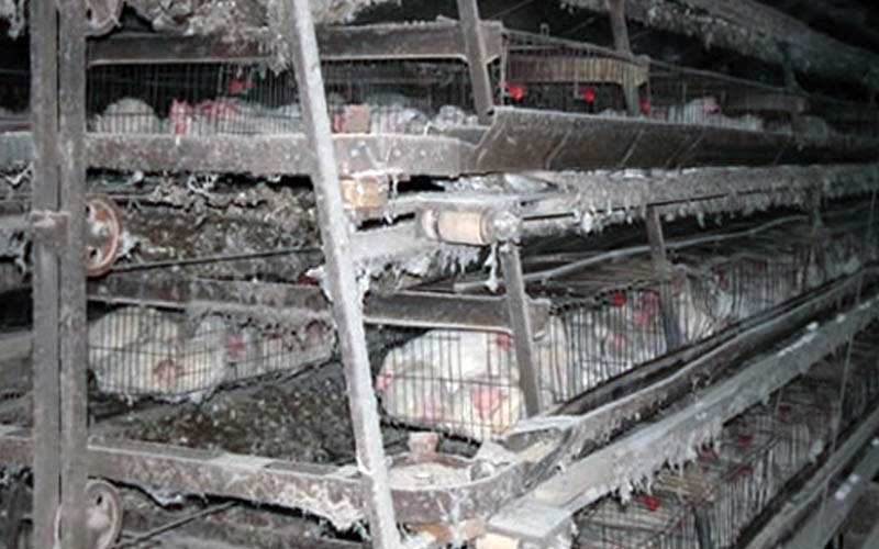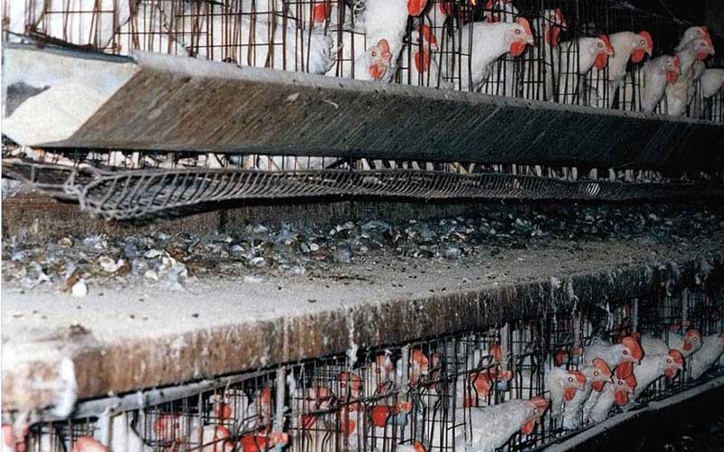 The standard conditions on egg farms are atrocious. Virtually all of the laying hens in the world live on factory farms in long, windowless barns with stacked battery rangers. More than 10 hens are crammed into a wire cage, often unable to spread their wings. Hens suffer from deformities of the feet and nails from metal mesh, injuries, illnesses, as well as loss of feathers caused by physical and psychological stress. These overcrowded conditions and the accumulation of droppings create an accumulation of toxic gases, especially ammonia. So eye infections, viral infections and upper airways are very common. Dozens of birds are often found dead and not collected.