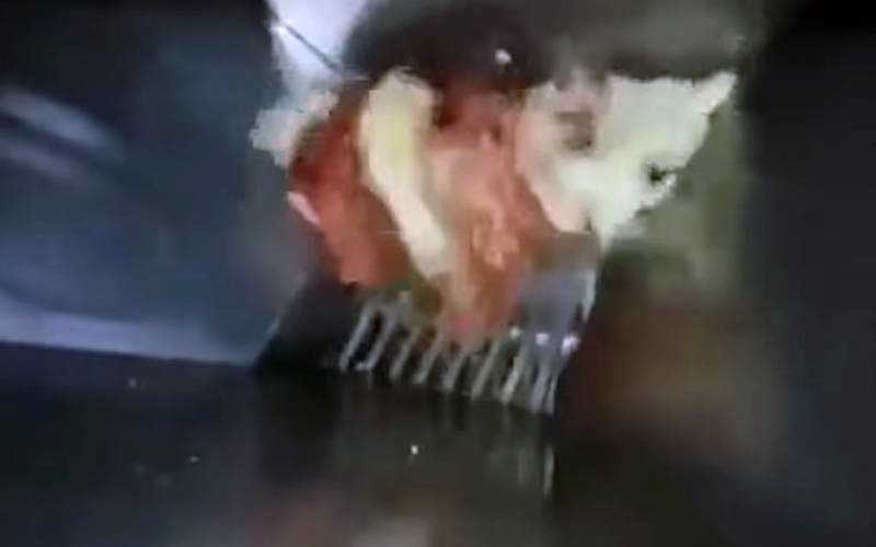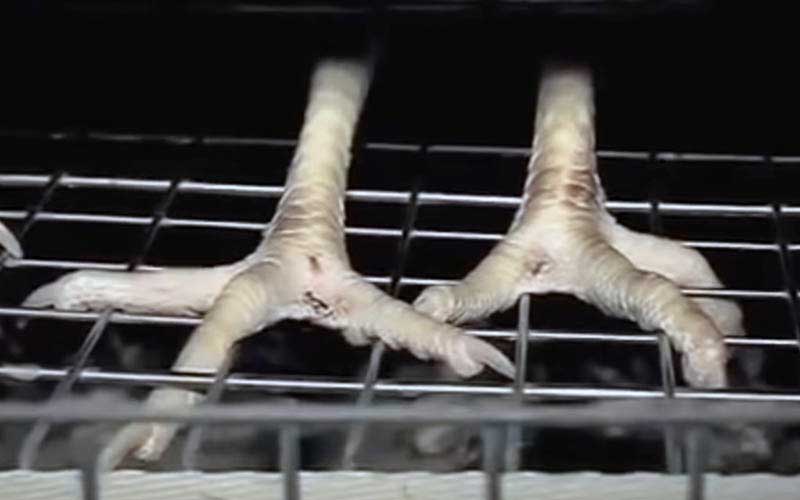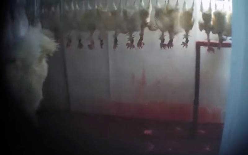 They are crammed into small crates, thrown in the back of a truck and taken to slaughter, where they will undergo brutal execution (in developed countries this is usually done by being thrown into an electric bath to be stunned. inefficiently, then hoisted upside down and along a treadmill to have his throat slit). Many hens will remain fully conscious after their throats are slit and are then boiled alive. They usually end up in cans of soup, chicken stew, or other chicken products where their bodies are cut into small pieces to hide bruises and deformities from consumers.