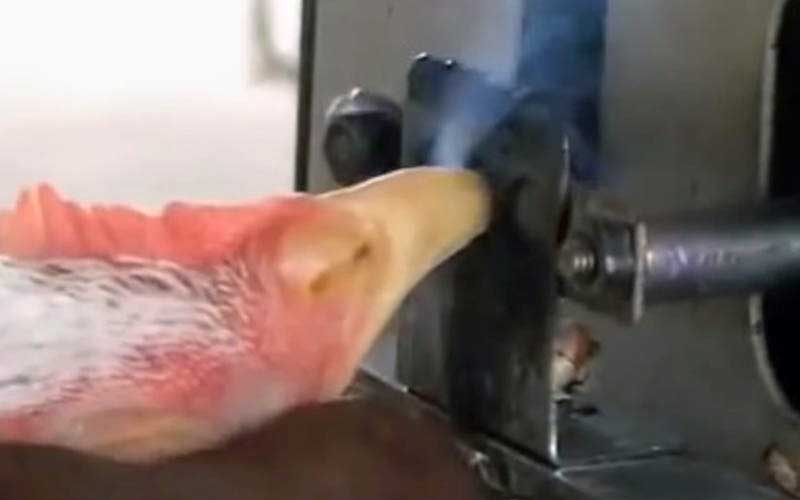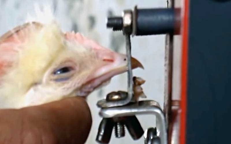 Even in organic free-range farms, it is quite common to cut the chicks' beaks, using a razor blade, a hot blade or an infrared laser at a temperature of over 800 ° C. The hen's beak is a complex functional organ with extensive innervation, with receptors that send pain and danger messages. As a result of this operation, many birds are unable to eat due to pain and die from dehydration, starvation or weakened immune systems.