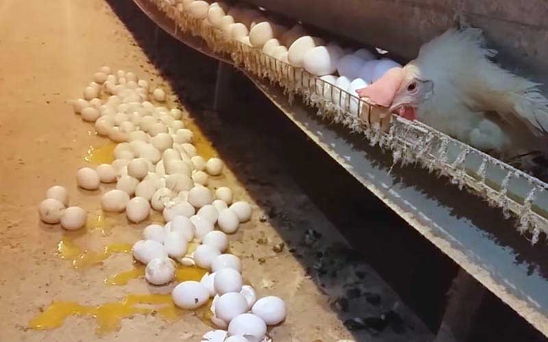Taking eggs from the hens repeatedly causes the hens to lay more, which can damage their reproductive system. In the egg industry, they have been genetically modified and fed to lay 200 to 350 eggs per year, while naturally, in the wild, those that have not been genetically modified, would lay only about 20 eggs per year. , with the aim of reproducing. Like female mammals, they have reproductive cycles and ovulate about 12 times a year. By interfering with the hen's natural process of brooding, protecting and nesting with her eggs, protecting and nesting the hen with her eggs, and constantly collecting them, their body responds instinctively by producing more eggs.