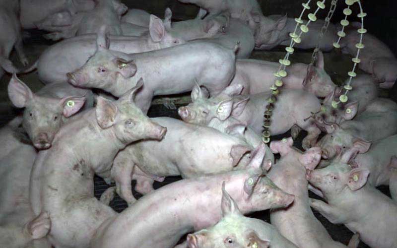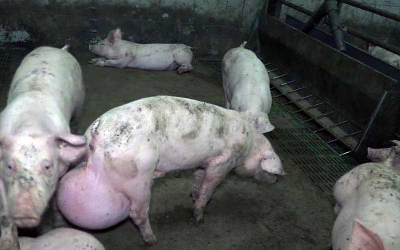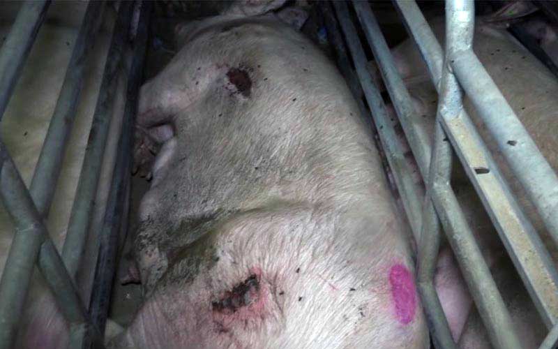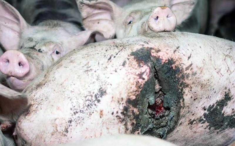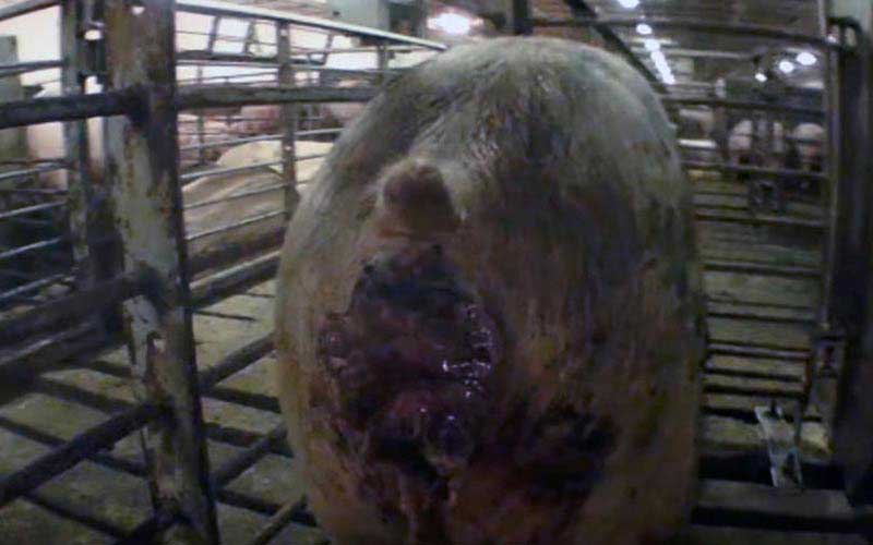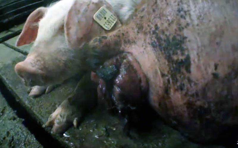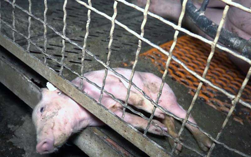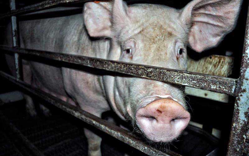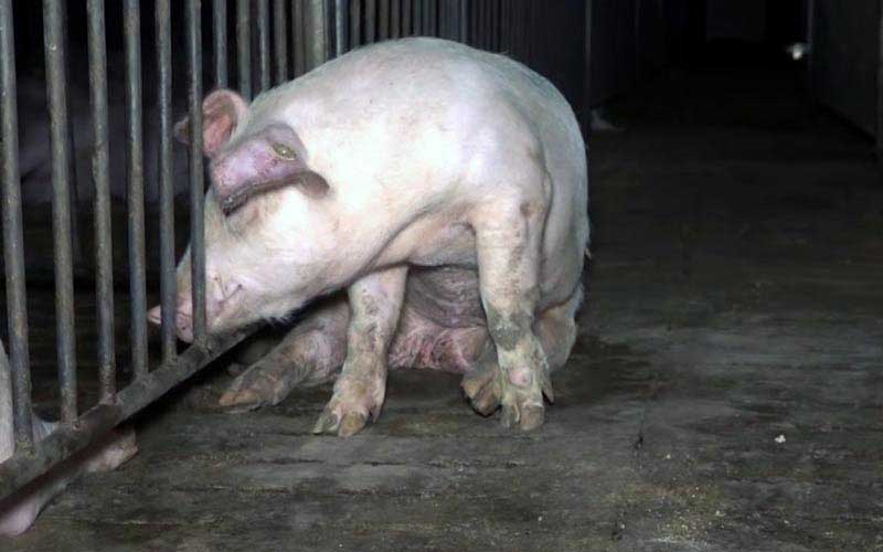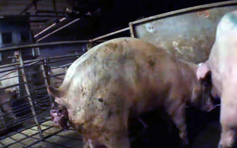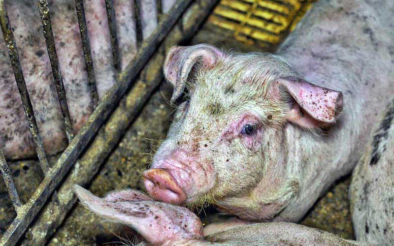 JAIL However, they are deprived of everything that is natural to them. They may never see the sun or breathe fresh air. In almost all cases, the pigs live penned and crammed in dull concrete enclosures or in overcrowded sheds in a deplorable state of hygiene: filthy enclosures, accumulation of droppings, profusion of flies, stagnant water. The corpses of pigs of all ages, adults or piglets litter the ground. Some are in an advanced state of decay, left among living animals.