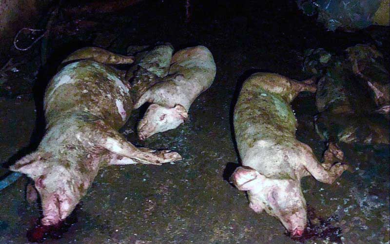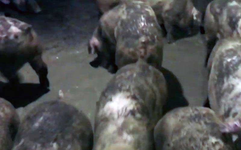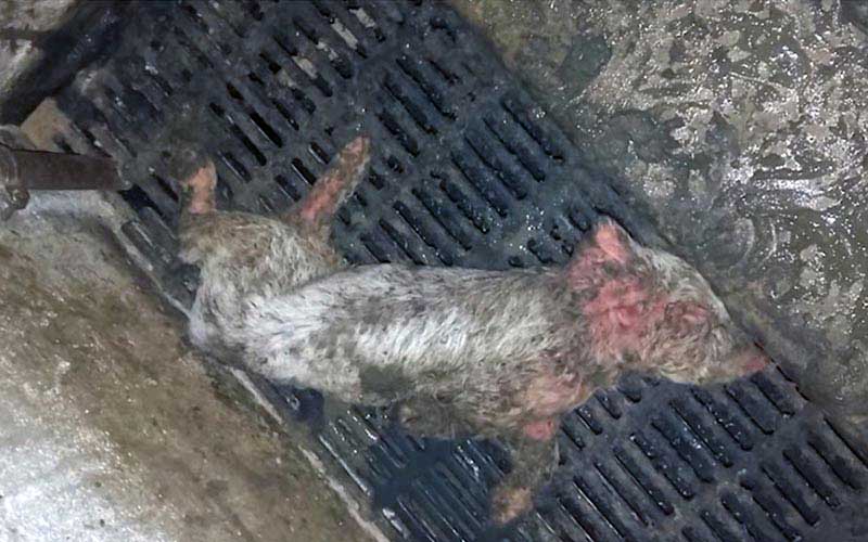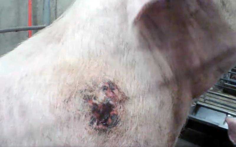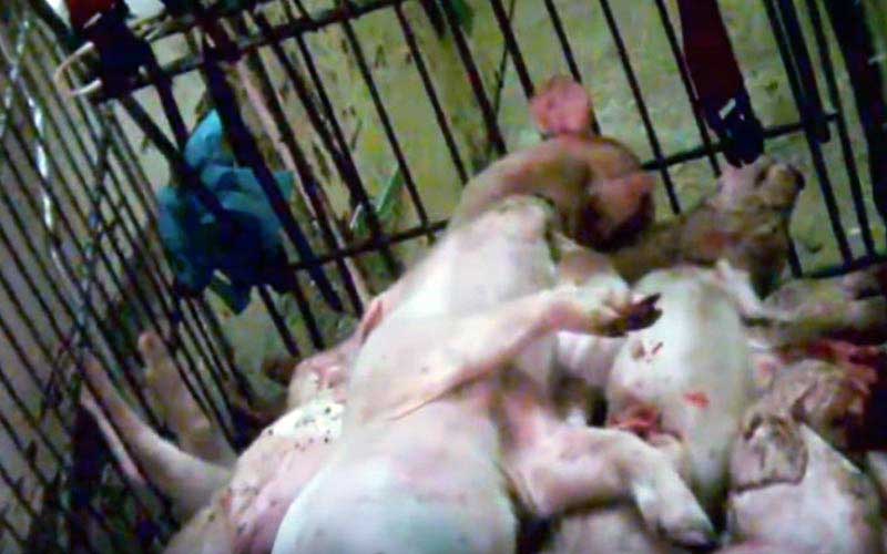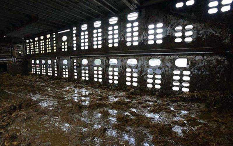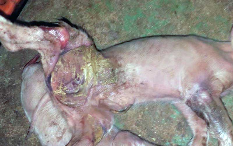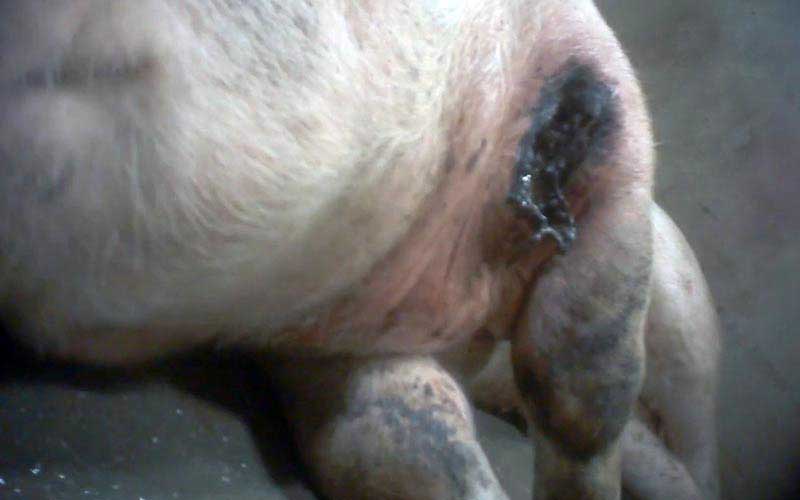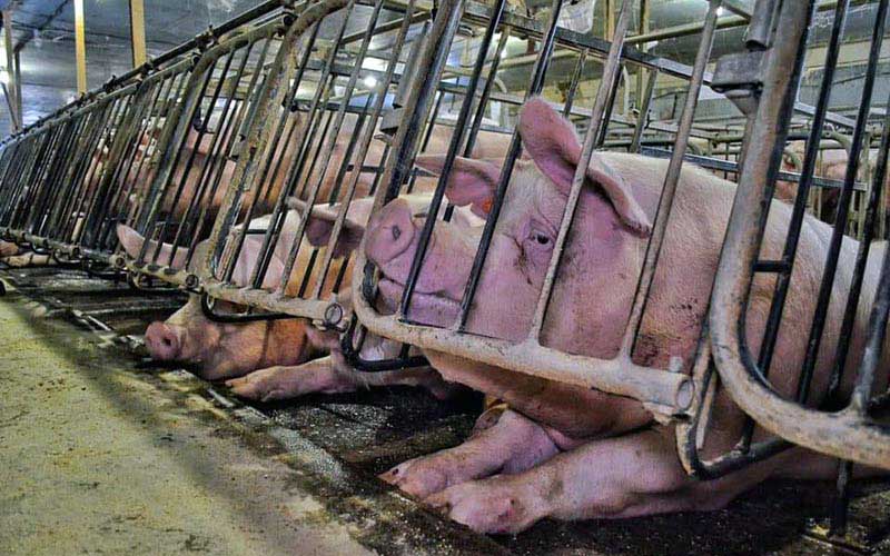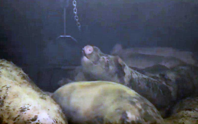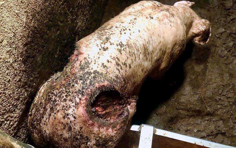 JAIL However, they are deprived of everything that is natural to them. They may never see the sun or breathe fresh air. In almost all cases, the pigs live penned and crammed in dull concrete enclosures or in overcrowded sheds in a deplorable state of hygiene: filthy enclosures, accumulation of droppings, profusion of flies, stagnant water. The corpses of pigs of all ages, adults or piglets litter the ground. Some are in an advanced state of decay, left among living animals.