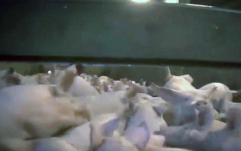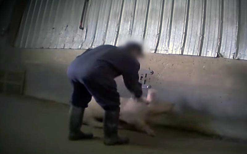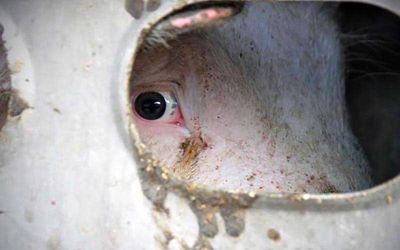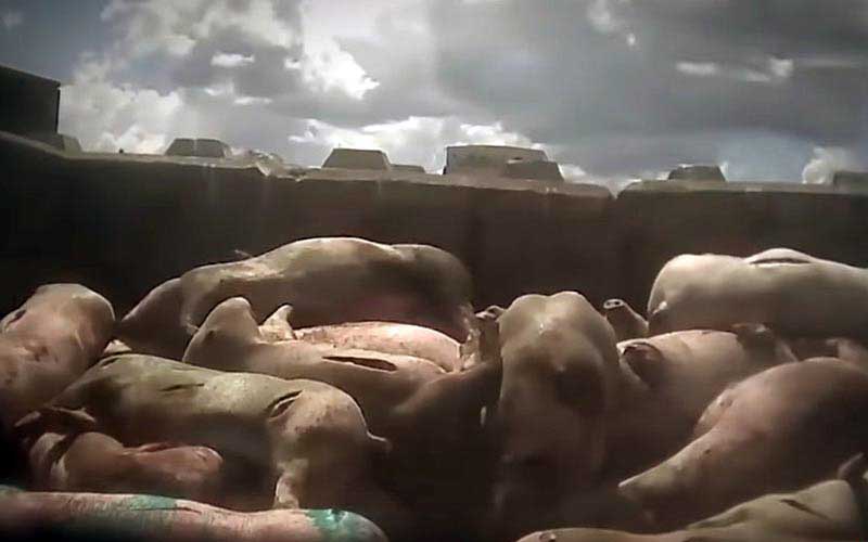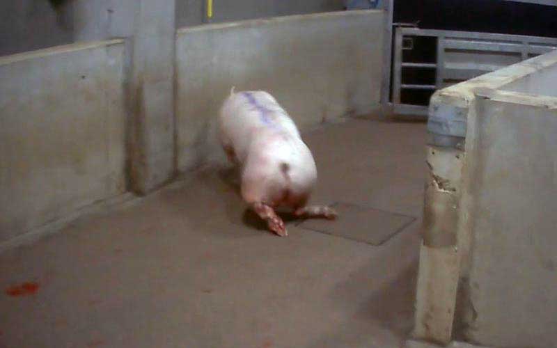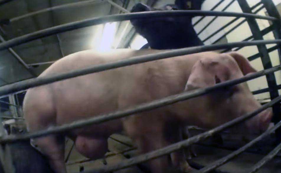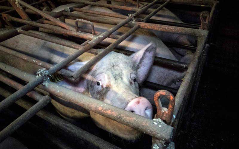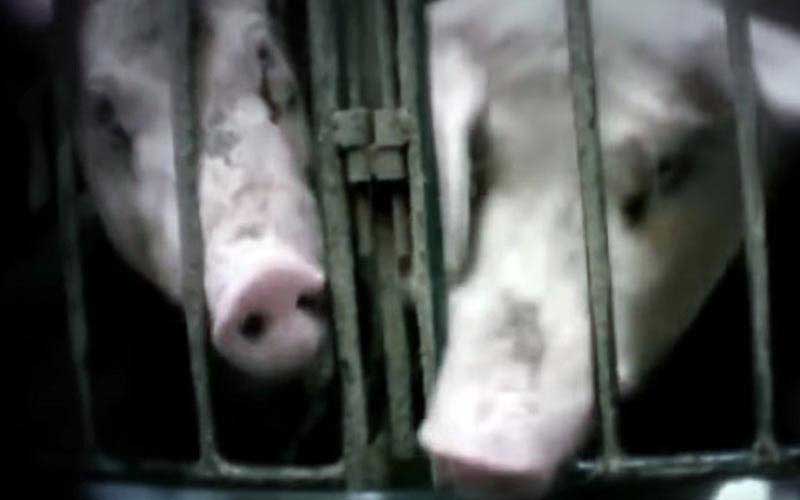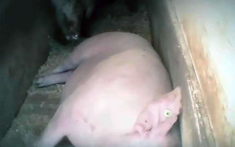 "In the dead of winter, there are always pigs stuck to the sides and floors of trucks, so you go there with wires or knives and cut into the flesh to detach them. Pigs are alive when you do. it." A slaughterhouse worker testifies.