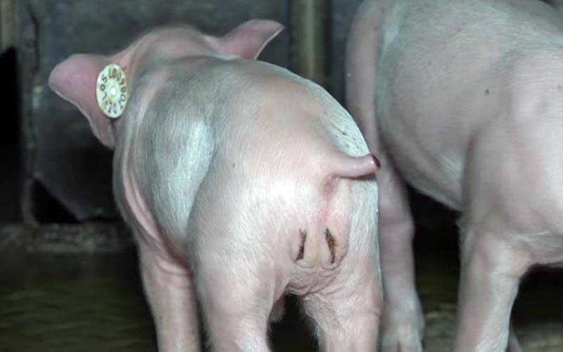 TORTURE To limit the consequences of these attacks, male and female piglets are almost systematically subjected to two types of mutilation, performed live, from an early age: cutting the tails to avoid tail-biting (this mutilation generates chronic pain similar to those described in humans after amputation) and trimming (or “grinding”) of the teeth to avoid injury to the udders of sows (this mutilation can cause late pain associated with inflammatory reactions and abscesses).