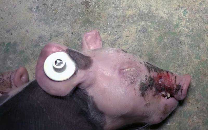 EXPERIMENTS In laboratories, pigs used for experimentation are inoculated with disease, subjected to conditions to trigger depression, or mutilated to serve as a teaching model for plastic surgery techniques or to heal wounds. They are also used in atrocious military tests in which they are shot multiple times and subjected to explosions that cause serious injuries to test methods of treatment.
