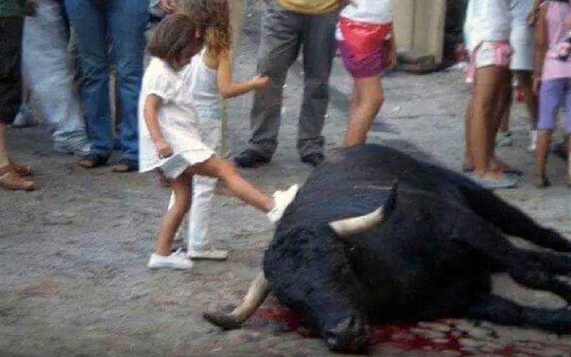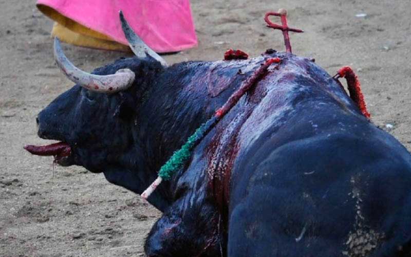 TRANSPORTATION : Transporting bulls to bullfighting towns is a painful ordeal. Torn from their natural environment, these animals are locked in wooden containment boxes measuring less than 2 m2. The journeys from the south of Spain can take several days and the animals have no possibility of moving. Sometimes they are even made to travel on an incline. Beyond the resulting fatigue, they receive neither water nor food. As transport takes place mainly in the summer season, some piled up animals lose up to 30 kg in the overheated trucks. In 2001, several dehydrated bulls were found lifeless in these trucks. When they arrive at the arena, the bulls will then be shot out, with a stick, and curses, as they were taken on board, with the same delicacy.