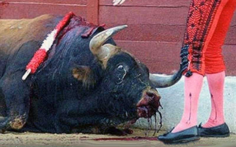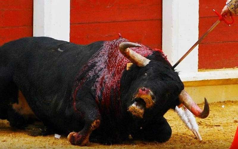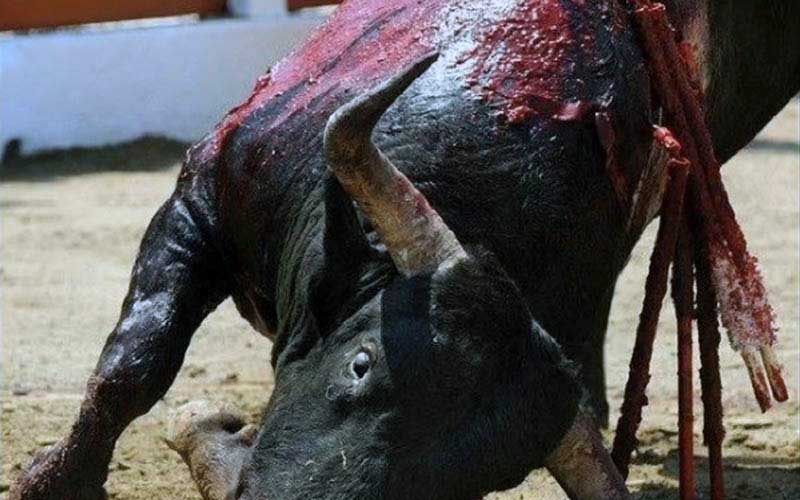 THIRD ACT (THE TERCIO DE DEATH): Third act takes place in the vast majority of bullfights: so-called “Spanish” bullfights. The peons again make several passes to the bull. They stimulate the exhausted animal a little more. The matador attracts and directs the bull's charges with the aid of his red cloth, further ridiculing and humiliating this poor, exhausted animal. He will then make him lower his head "obediently" in order to plant his sword in an already bloody tourniquet. Death then appears as a deliverance… and the matador - killer in Spanish - as a savior! But often the weapon is badly planted. It can come out through the flanks or pierce a lung. The victim then seemed to vomit his blood and died of suffocation from internal bleeding. When the first blow of the sword does not kill fast enough, a peon slips behind the victim and with a quick gesture, withdraws the sword. He then returns it to the matador who will start the killing again. It happens that the bulls receive six to seven sword blows, or more! When the bull has the “indecency” not to fall, which happens about one in three times, the killer finishes his sad task with the help of a specific sword, the descabello, planted between the two horns, to lacerate. the brain…