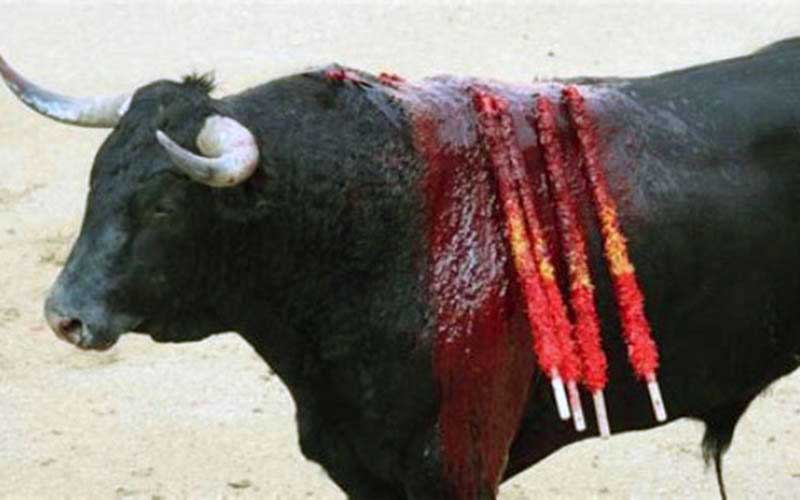 SECOND ACT (THE TERCIO DE BANDERILLES): This step is usually presented as a simple game of planting props on the back of the bull. Commonly called banderillas, these accessories are actually harpoons 5 or even 6 centimeters long, adorned with multicolored flowers that distract the public's attention. The shameful purpose of this "game" is to drain the blood of the animal to prevent it from having internal bleeding as a result of the "labor" of the picador. This is to ensure that the bull does not give way until the end of the show.
