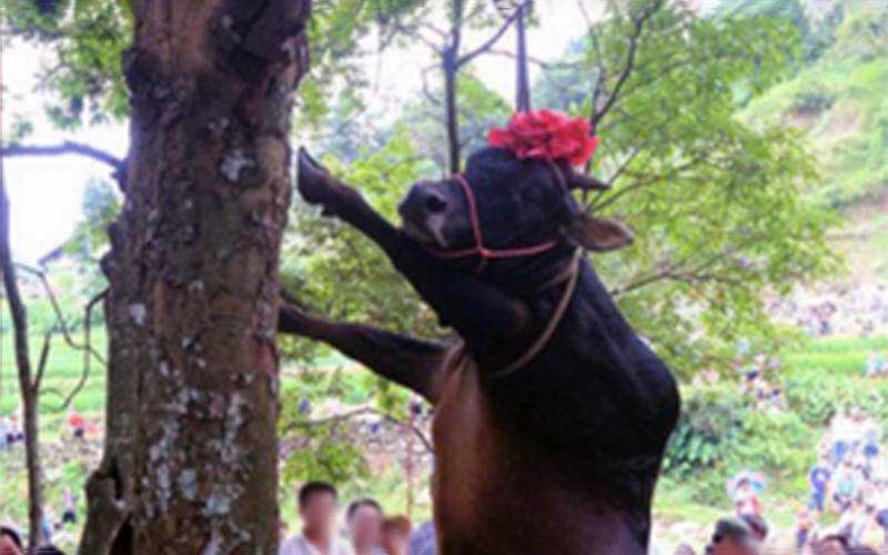BREEDING : When breeding bulls are weaned with sticks in their noses to prevent them from sucking. They are branded with a hot iron and the ear markings are sometimes cut open with a knife. Bulls may also be subjected to a daily forced walking exercise in order to toughen them up.