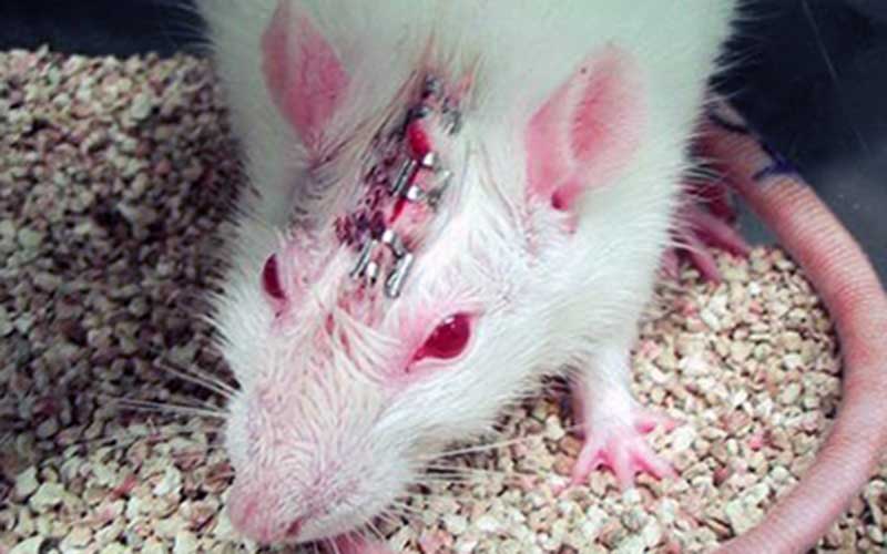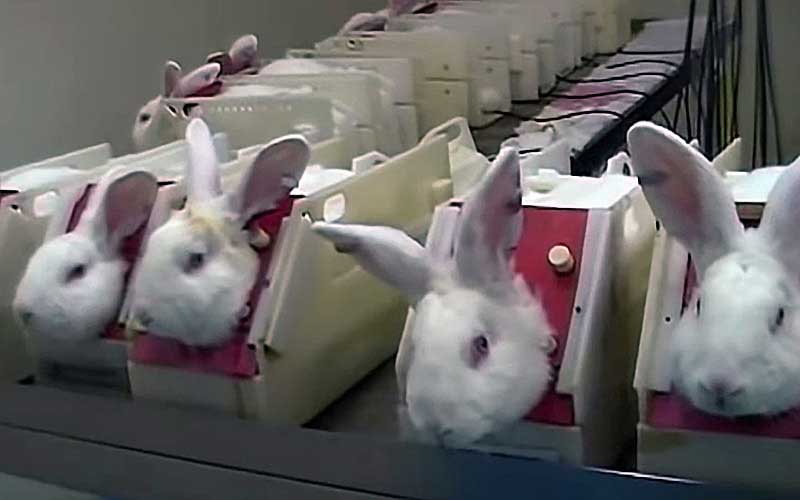 What can justify the application of a product directly into the eyes of a rabbit without local anesthesia (often chosen because they do not secrete tears, making it impossible for them to expel the product from their eye), which can cause lesions and perforation of the eyeball? Animals feel pain and fear, and they suffer intensely when they are poisoned, cut open, blinded, electrocuted, dismembered, or infected with deadly diseases. In addition to being immoral and extremely cruel, animal testing and experimentation are useless: animals are not models for humans. For example, penicillin kills guinea pigs but is inactive in rabbits; aspirin kills cats and causes birth defects in rats, mice, guinea pigs, dogs, and monkeys; and morphine, a tranquilizer in humans, stimulates goats, cats, and horses. Also, methods exist, such as the reproduction of artificial skin from human cells and computer simulations, which are just as effective, in addition to often being cheaper.