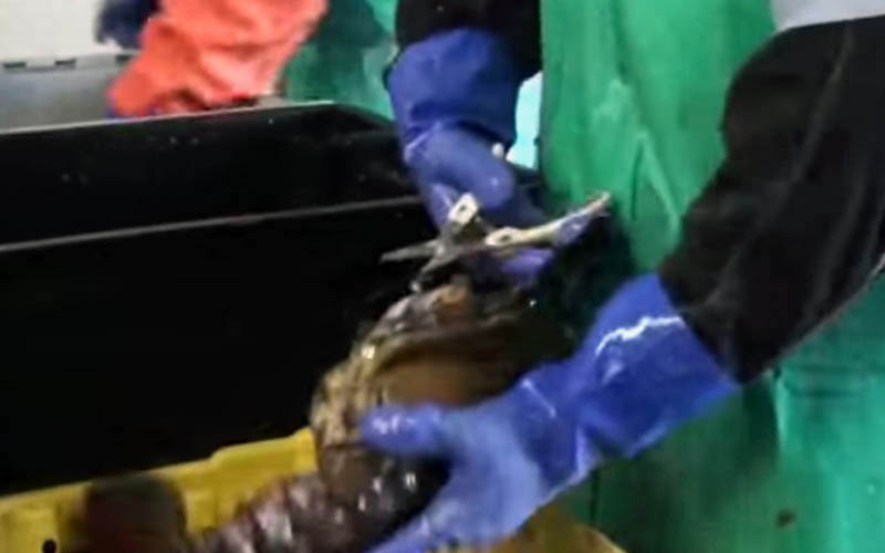 Birds flap their wings and move their heads as they bleed. They clearly show signs of state of consciousness and sensitivity, meaning the birds are awake while being strangled and suffocated or they are dying from hemorrhage or trauma under extremely painful conditions and causing a lot of anxiety.