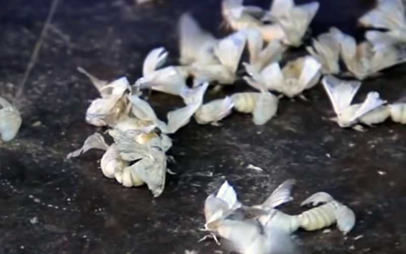 Quel que soit leur traitement, il n'en demeure pas moins que les vers à soie domestiqués sont exploités pour leur soie. Ils ont été élevés de manière sélective dans le seul but de produire autant de soie que possible, tout comme les animaux de l'industrie alimentaire qui ont été élevés dans des absurdités défigurées trop grandes pour supporter leur propre poids corporel. Le Bombyx mori adulte ne peut même pas voler. Ils ne peuvent pas non plus manger en raison de leur partie buccale réduite et de leurs petites têtes, un fait qui est souvent cité comme preuve de manipulation humaine, mais cela est vrai de tous les Saturniidae ou papillons de soie géants.