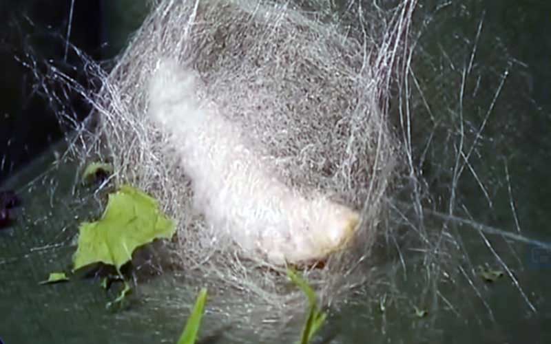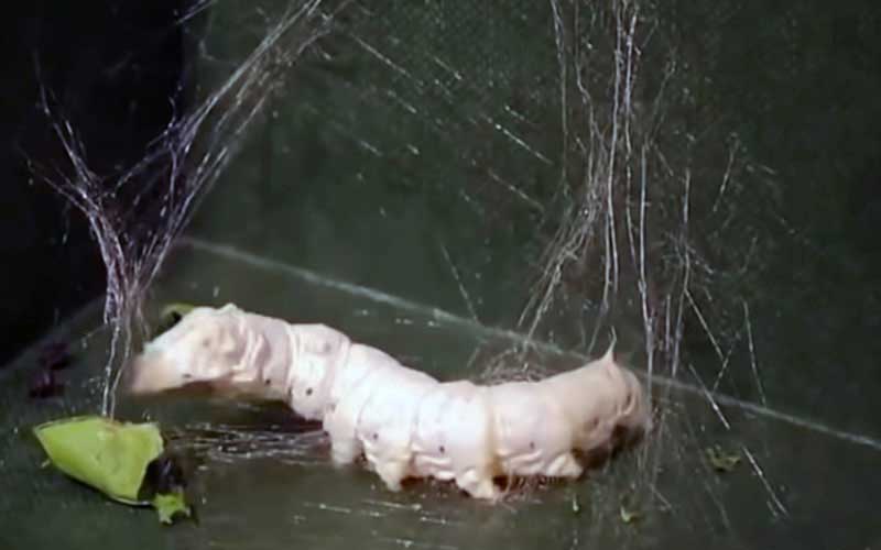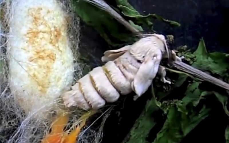 Les Bombyx mori ont une préférence pour les feuilles de mûrier blanc (leur nom est en fait latin pour « vers à soie du mûrier »), et la soie de mûrier est considérée comme la plus fine et la plus brillante. Les nouveau-nés mangent constamment et passent par cinq stades, le terme pour le stade de développement entre les mues. Sur une période d'environ 35 jours, Bombyx mori a perdu sa peau quatre fois, se retrouvant 10 000 fois plus lourde et 30 fois plus longue qu'à l'éclosion. Une fois qu'ils ont atteint leur cinquième stade, ils entrent dans leur stade nymphal et s'enveloppent dans des cocons de pure soie.