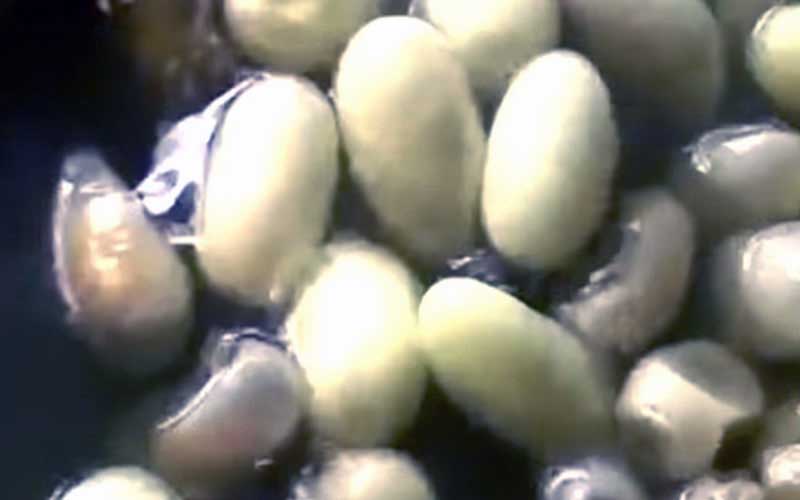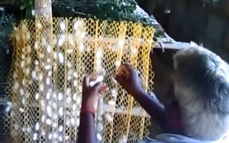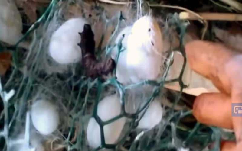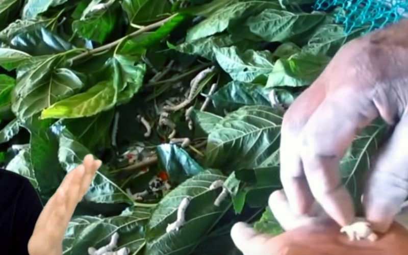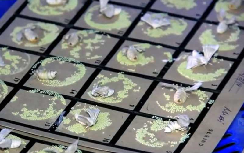 Les vers à soie responsables de la grande majorité de la production commerciale de soie sont les Bombyx mori, domestiqués et élevés sélectivement à partir du Bombyx mandarina sauvage. Lorsqu'un Bombyx mori pond des œufs, ils éclosent généralement dans les 10 à 14 jours. Cependant, selon les besoins de l'agriculteur, ils sont souvent placés au réfrigérateur pendant des mois, jusqu'à un an. Une fois réchauffés, ils éclosent généralement dans le même délai. Les nouveau-nés doivent être nourris immédiatement car ils ont un appétit vorace et mourront très rapidement de déshydratation et de famine.