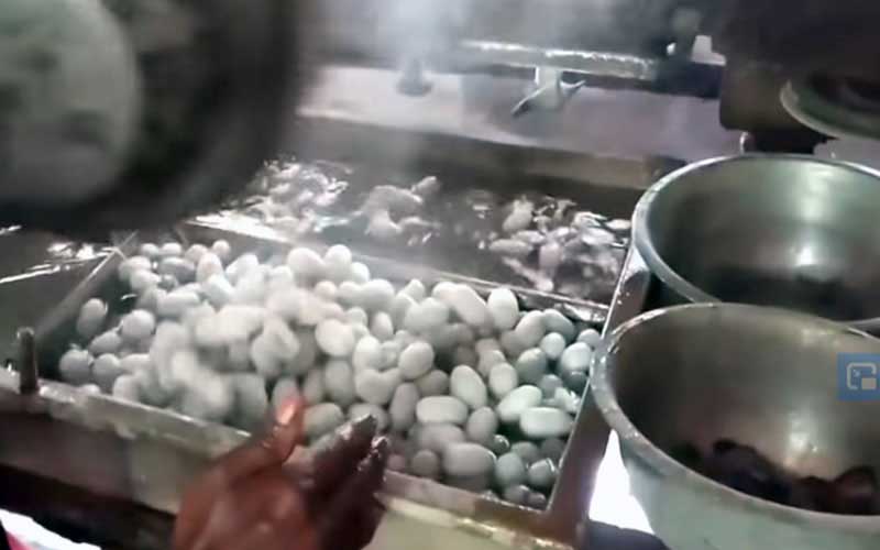 Pour sortir de leurs cocons, les vers à soie, à ce stade des papillons de nuit, mâchent leur chemin, raccourcissant ainsi considérablement la longueur des fils de soie et diminuant leur valeur et l'éclat du matériau produit. Pour éviter cette destruction des matières premières, les producteurs de soie vont étouffer, ce qui signifie tuer, les pupes soit en les faisant cuire, en les immergeant dans de l'eau bouillante, soit, plus rarement, en les congelant ou en les perçant avec une aiguille. Cela se fait généralement entre deux jours et deux semaines après le début de la filature, avant qu'ils ne se transforment en papillons.